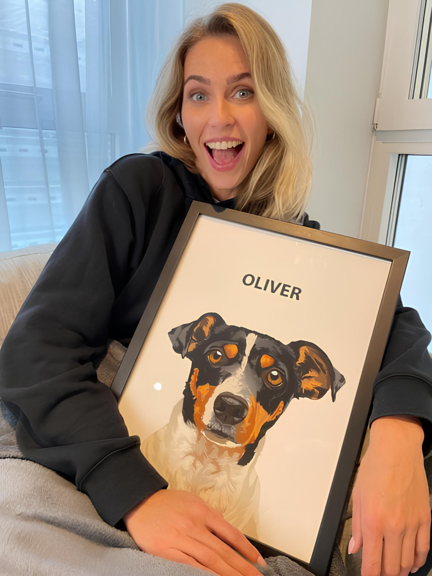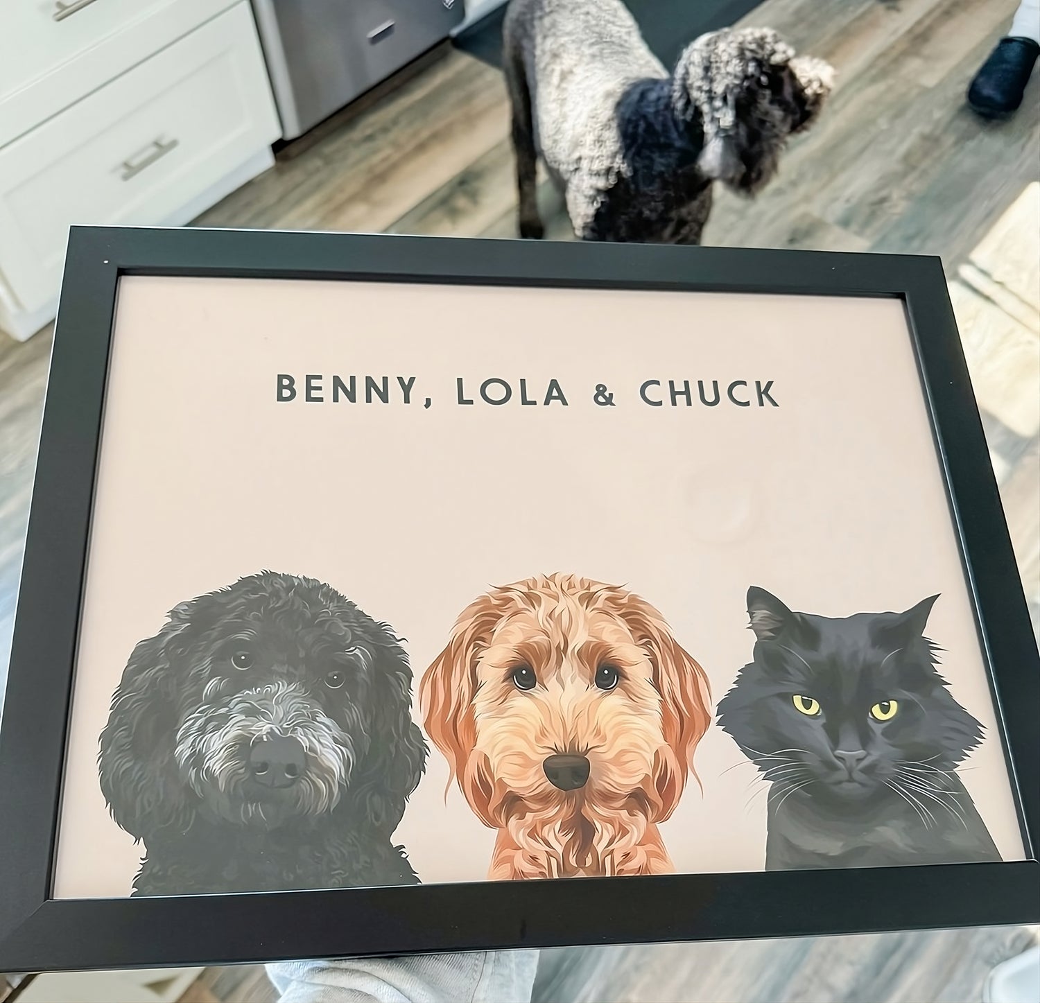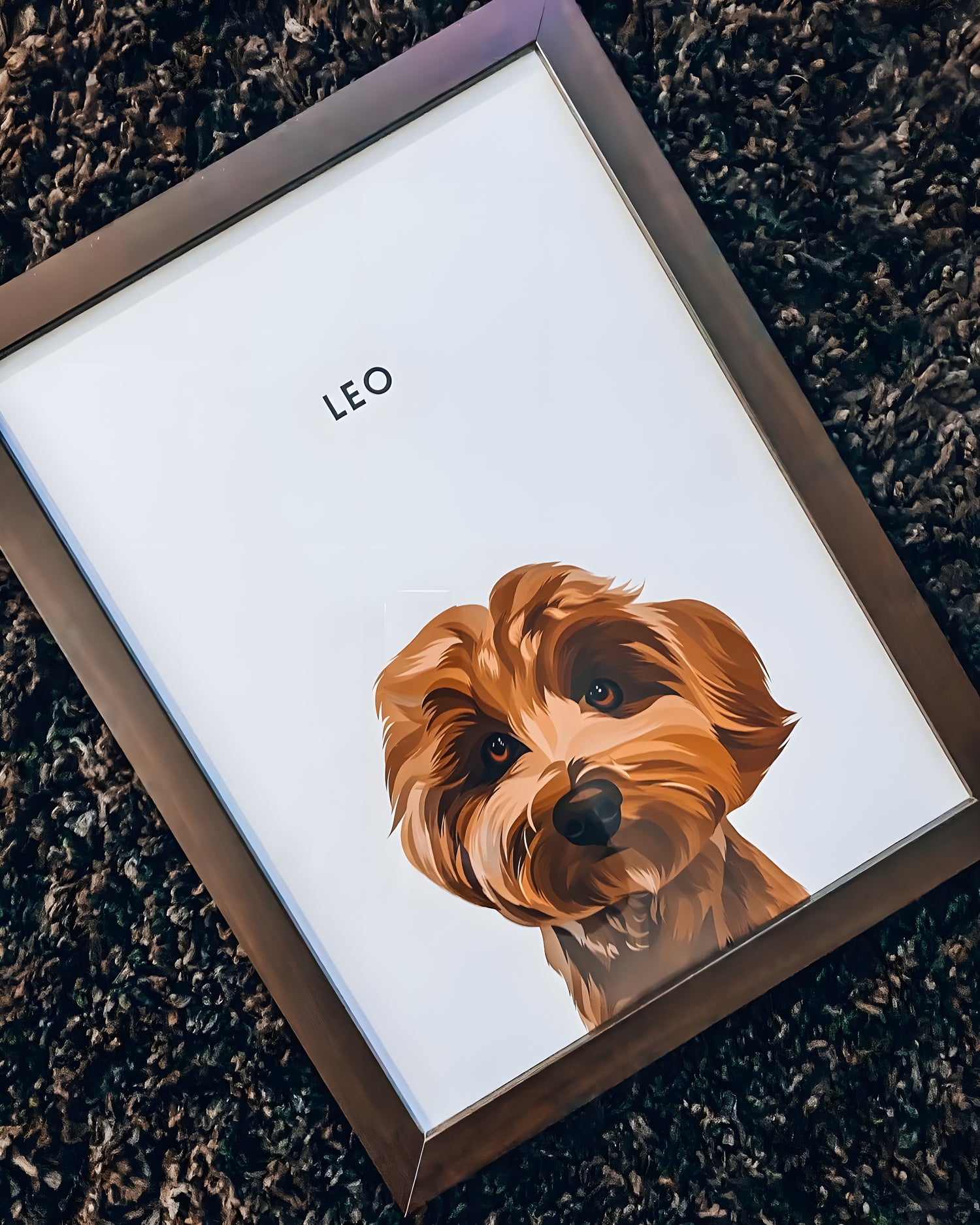 Add your pet's name, select a background color, choose a style, and pick a frame and size to make it uniquely yours.